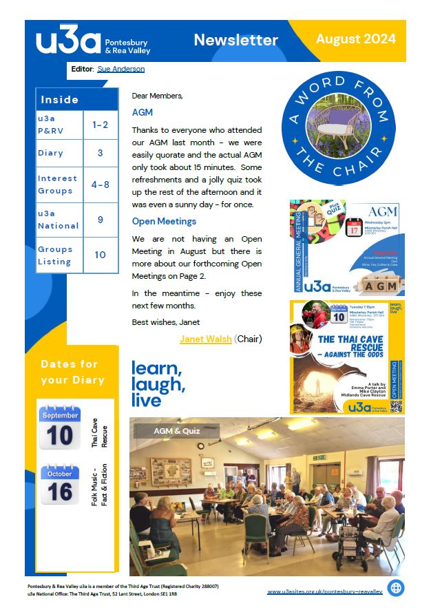 - membership of our u3a also allows access to various activities through the national organistaion, the Third Age Trust (TAT):
